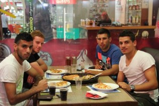 שחקני ג'ת אלהאלי נתפסו בקניון עבדלטיף באום אל פאחם בסיום אחד האימונים השבוע. החבר'ה הגיעו מאוד רעבים ונפלו על מגש פיצה XL.צלם דאבל פס דאג לתעד את הארוע.