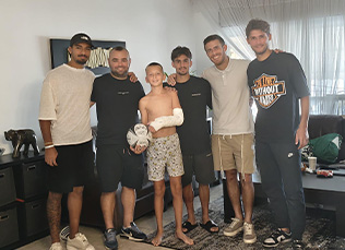 שחקני קבוצת הבוגרים של עירוני אשדוד מליגה א' שי מושל, ליעד כהן, עילאי חדד ולירוי רביבו יחד עם מאמן הקבוצה דניאל טולמסוב, הגיעו לבקר את שחקן קבוצת ילדים ב' אריאל זגורסקי ששבר את היד. הביקור המרגש העלה חיוך גדול על הפנים של השחקן הצעיר.
