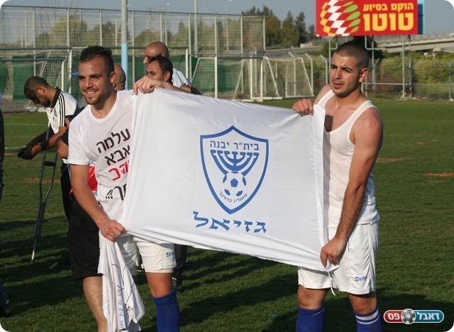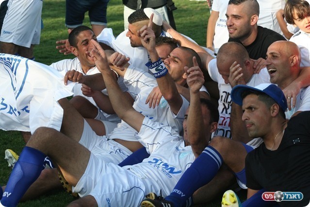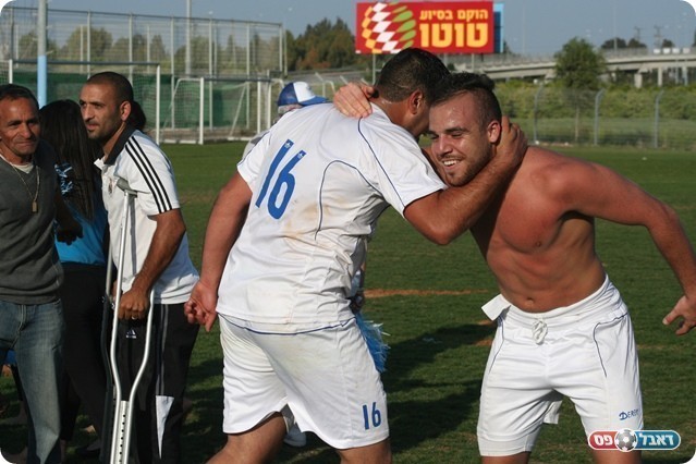 ארבע דקות תוספת זמן חלפו להן השופט נעמד ליד הרחבה של יבנה ושרק. זה האות לשחקנים ולקהל להתחיל לחגוג.