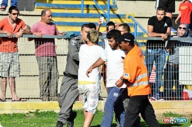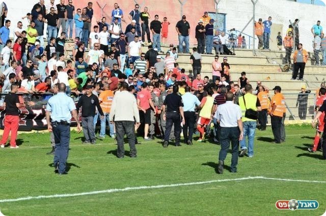 למרות השעה המוקדמת (15:00) ואמצע השבוע התייצבו כ-800 צופים בתוכם ראש המועצה רפיק חלבי ואחראי הספורט עאמר חוסיסי. אלה התחלקו כמעט שווה בשווה בין שני מחנות. כוחות אבטחה ומשטרה גדולים חצצו ביניהם ומנעו בגופם כל התפרעות או ניסיון לעשות כך.