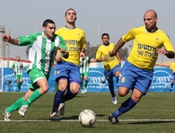 טובים השניים מן האחד,רועי כהן(בירוק),בדרך לאבד עוד כדור מול אלקבץ ושריקי האורחים.(צילום:לירן דורף)