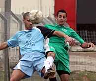 אלקריף(בתכלת)בדרך למספרת,היה צריך לנגוח לעבר השער.(צילום:לירן דורף)