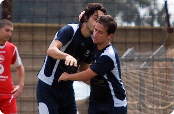 בדש(מימין)ועמית נקב חוגגים את שער השוויון של נתניה.(צילום:אמיר דבי)