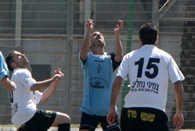 ניסים אזרזר(בתכלת)מנסה לעבור את אסף קראוזה מפתח תקווה.(צילום:לירן דורף)