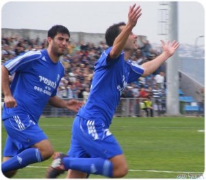 אשרף סולימן (בכחול). בדרך לסיכום במכבי א.א. פאחם (צילום: אתר goool)