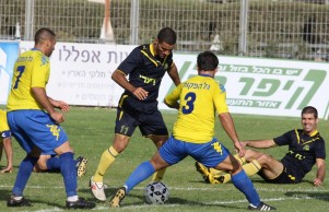 דיא אבועיידא (בשחור) מול מתן מור יוסף. שליטה של נתיבות במרכז השדה (צילום: אנס אבודעבס)