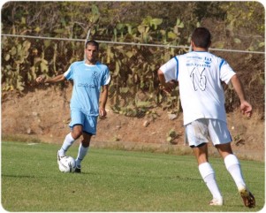 אבי דבח שמאחריו ארז ללוז. משחק פושר של שתי הקבוצות (צילום: בועז רביד)
