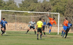 שחקני מרחבים חוגגים את השוויון. כיסוי לא טוב בהגנת שדרות (צילום: אורי גבאי)
