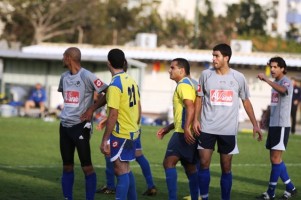 חלוץ פרדיס אבו ערישי (באפור)משקיף מרציאנו קפטן ברקאי.(צילום: שלומי גבאי)