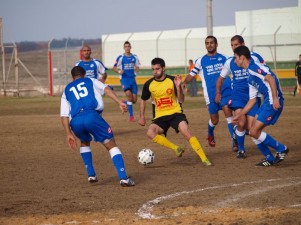 ההזדמנות הראשונה של פאחם. סאלח חאג' (בצהוב) מול לירן גולרשן (צילום: מוחמד חאדר אניס)