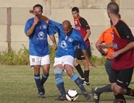 מרקו לנקרי(במרכז)חוגג עם חברים,נצחון ענק לרמת ישראל.(צילום:בועז רביד)