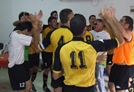 שחקני קריית גת חוגגים נצחון ענק במגרש השקמה.(צילום:ירון קדוש)