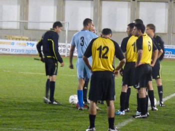 רצו נקמה. שחקני מצליח לפני המשחק (צילום: אלון יהודיוף)