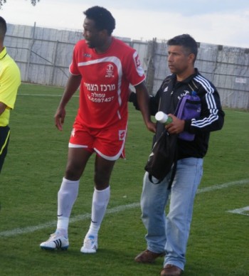עבדאלה קדח (באדום)משגיח על שאולוב(צילום: אורי דוד)
