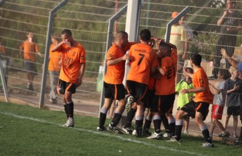 שחקני מגדל העמק חוגגים את הנצחון על נשר(צילום:זיו אמויאל)