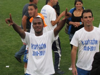 שמחת המנצחים. שחקני אולגה חוגגים (צילום: מוחמד חאדר אניס)