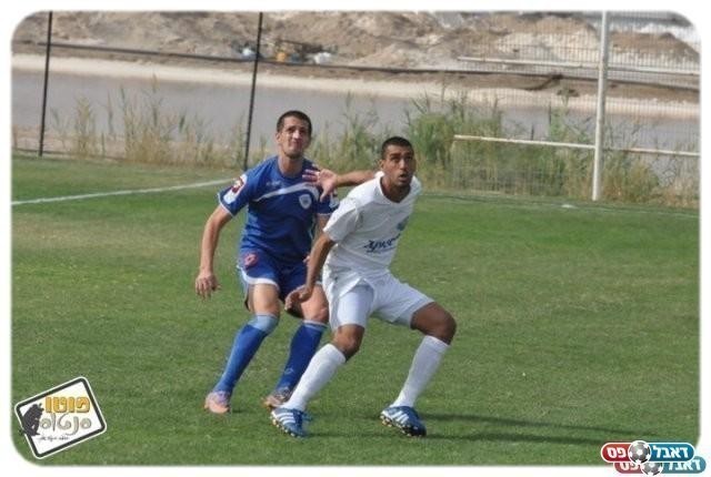 מכבי יפו זו יחידה אחת. סבג שומר על אבי מלכה במשחק הפלייאוף באילת (צילום: יוסי דוס-סנטוס)