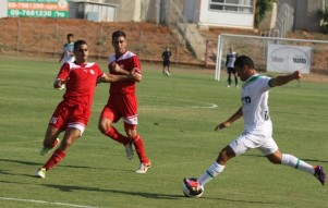 החמיץ פעמיים במחצית הראשונה. עומר פרץ (באדום. צילום: שלומי גבאי).
