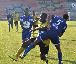 מחצית שנייה מצוינת. קובי חסן (בצהוב) מול עידן ציון (צילום: מוחמד חאדר אניס)