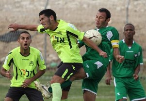 מחצית ראשונה חלשה. באסם אלהוזייל (בירוק) עוצר את עידו ישראלי (צילום: אנס אבודעבס)