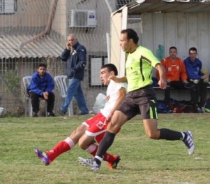 החמצת המשחק. משה אסולין בועט לשמיים (צילום: אנס אבודעבס)