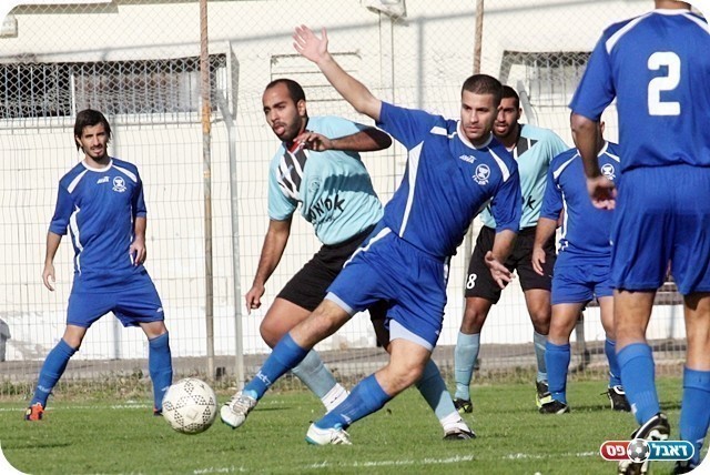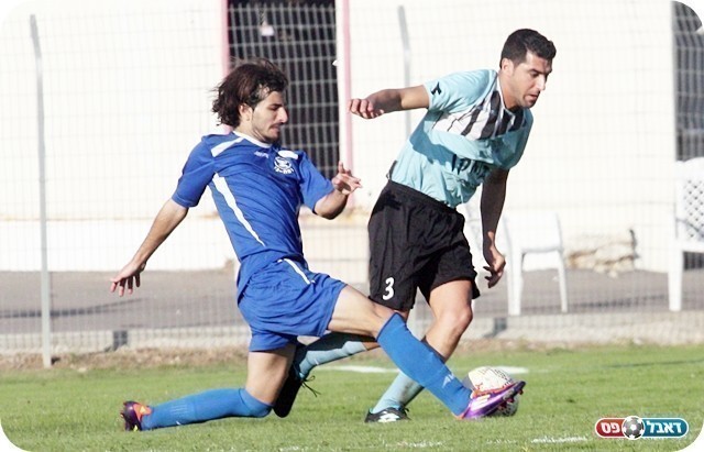 ללא מחץ בהתקפה. גיל ליברובסקי מתקל את דור מרקוביץ' (צילום: לירן דורף)
