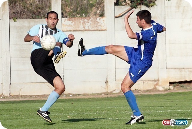 משחק של קיצוצים. לוטן (בתכלת) מתקל את אורן יחזקאל (צילום: לירן דורף)