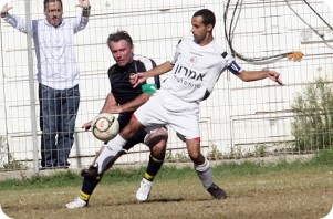 רצו לכבוש עוד. מייקל משה מחטיא מול אוהד פינקלמן (צילום: לירן דורף)