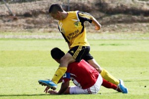 משחק רדום. טדרוס בוגלה (בצהוב) וסלומון דניאל (צילום: רועי אסרף)