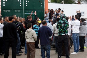 אוהדי קריית מלאכי מחוץ למגרשץ (צילום: רועי אסרף)
