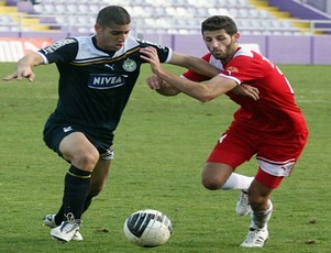 עזריה שומר על הכדור מפני רז. (צילום: לירן דורף)