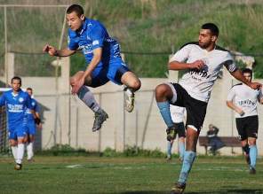 מחצית שנייה רדומה - יובל עופרי (בכחול) בולם את ניר טהר לב.