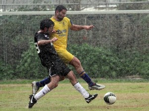 איש המשחק של מחניים. קנפו טובע בגשם (צילום: לירן דורף)