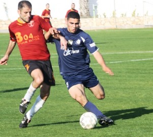 משחק אגרסיבי. ראפאת חמודה וחאלד אגא (צילום: אבי פפיס)
