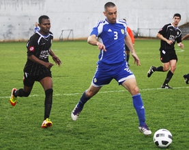 משחק בכורה בבוגרים סלים עמאש(בשחור) מול מגן צפת/כרמיאל.(צילום:שלומי גבאי)