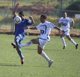 אופיר חיים בועט, סרוסי מנסה לבלום (צילום: שלומי גבאי)