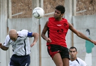 רגב הינדי(באדום)מגונן על הכדור מפני כובש שער הנצחון,אביעד זרביב.(צילום:לירן דורף)