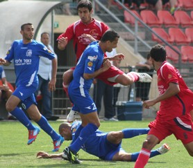 מגרלשווילי מוציא את העצבים על אבו ענזה (צילום: ארז נעמן)