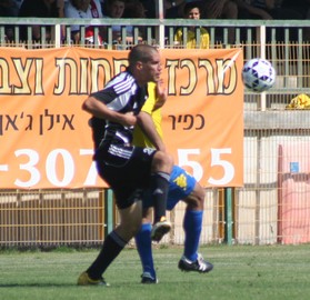 ברקאי צמוד לקרגולה יחד עם גיא צרפתי במשחק האחרון (צילום: ארז נעמן)