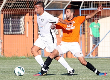 חילוף שהעיר את המשחק. חן לוי (בכתום) ואבישי אטיאס (צילום: לירן דורף)