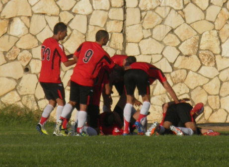 מהפך. שחקני דבוריה חוגגים את השני (צילום: אחמד עזאיזה)