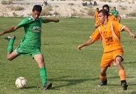 דורון בוהדנה(בירוק)מתעתע בשי גבאי מבאר יעקב.(צילום:אנס אבודעבס)