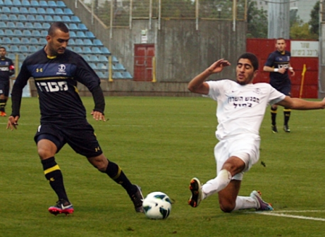 ההזדמנות הראשונה של הרצליה. קאסם מחמיד בורח ממוטי כלטוב (צילום: לירן דורף)