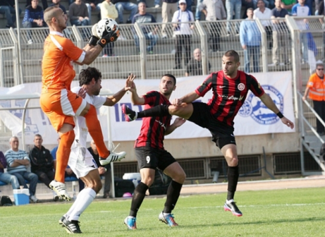 ניסה להתחכם. המחמיץ של יפו, צמח מול הכובש של נצרת עילית, מלכה (צילום: לירן דורף)