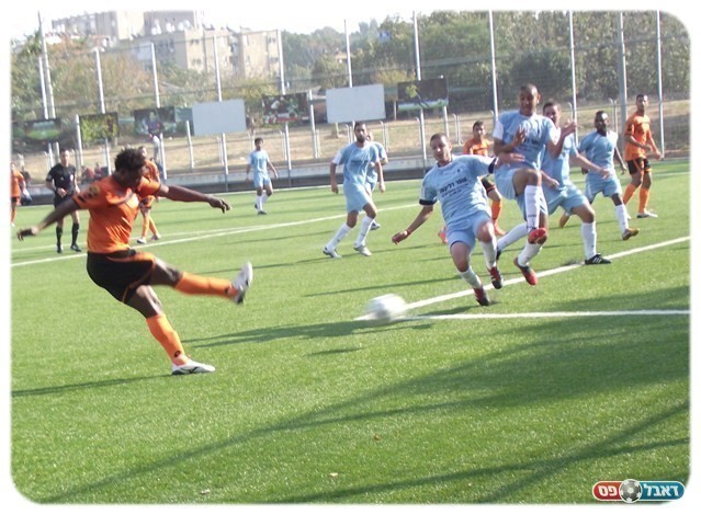 מחצית ראשונה משמימה. אוגקויו בועט לקורה (צילום: אלירן ברנשטיין)