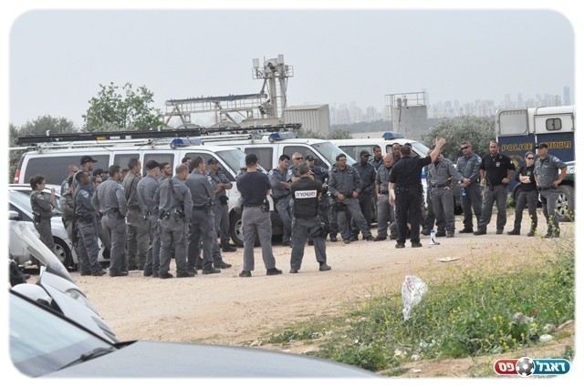 אווירה הייתה. המשטרה והאוהדים (צילום: מוחמד חאדר אניס)