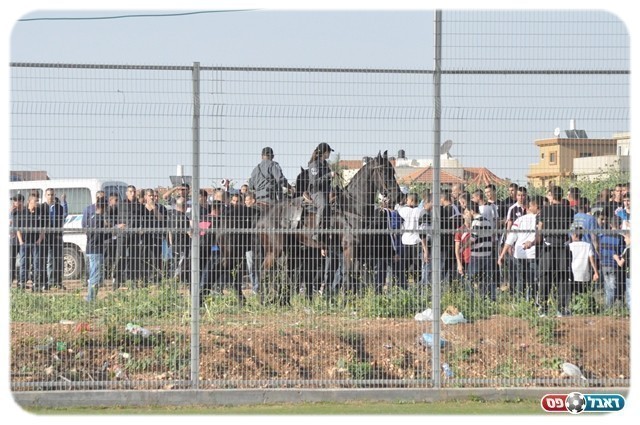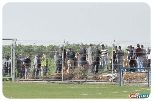 אנשי הקבוצות והמשטרה עשו את העבודה. התקריות בסיום (צילום: מוחמד חאדר אניס)