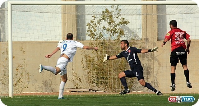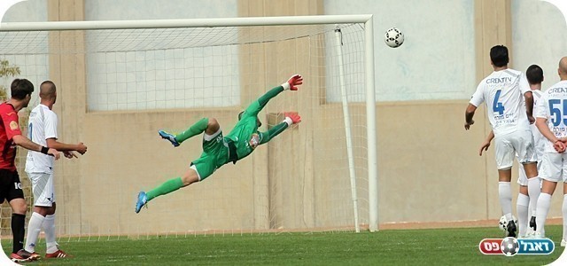 משחק טוב של השוער. שמש מקדים את צמח (צילום: לירן דורף)