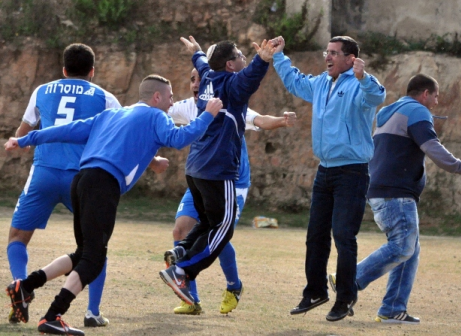 בדרך הבטוחה לליגה א'. שחקני בית שאן חוגגים רביעיה נגד איכסל.