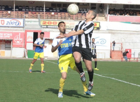 הוכיחה מדוע היא קבוצת ההגנה הטובה ביותר. קובי כהן בולם את חגי יצחק (צילום: שי מוגילבסקי)